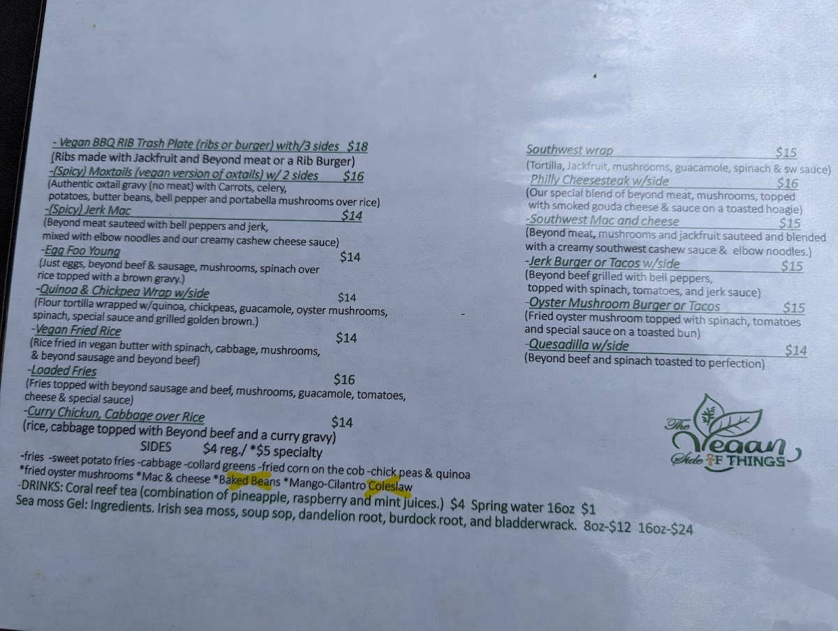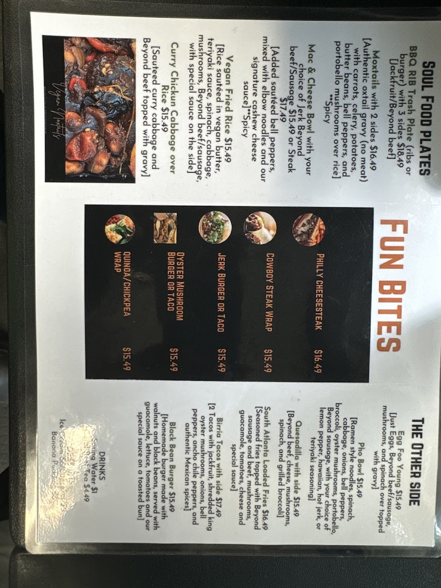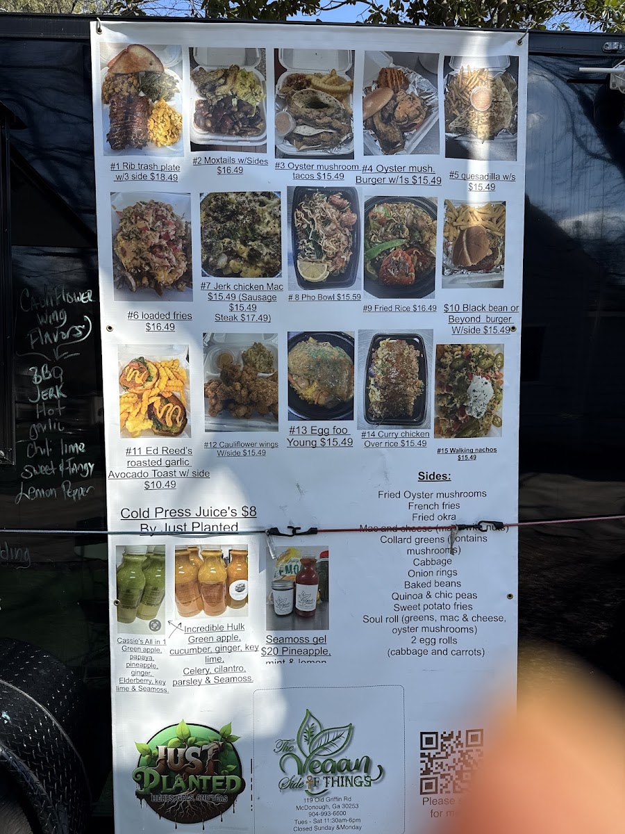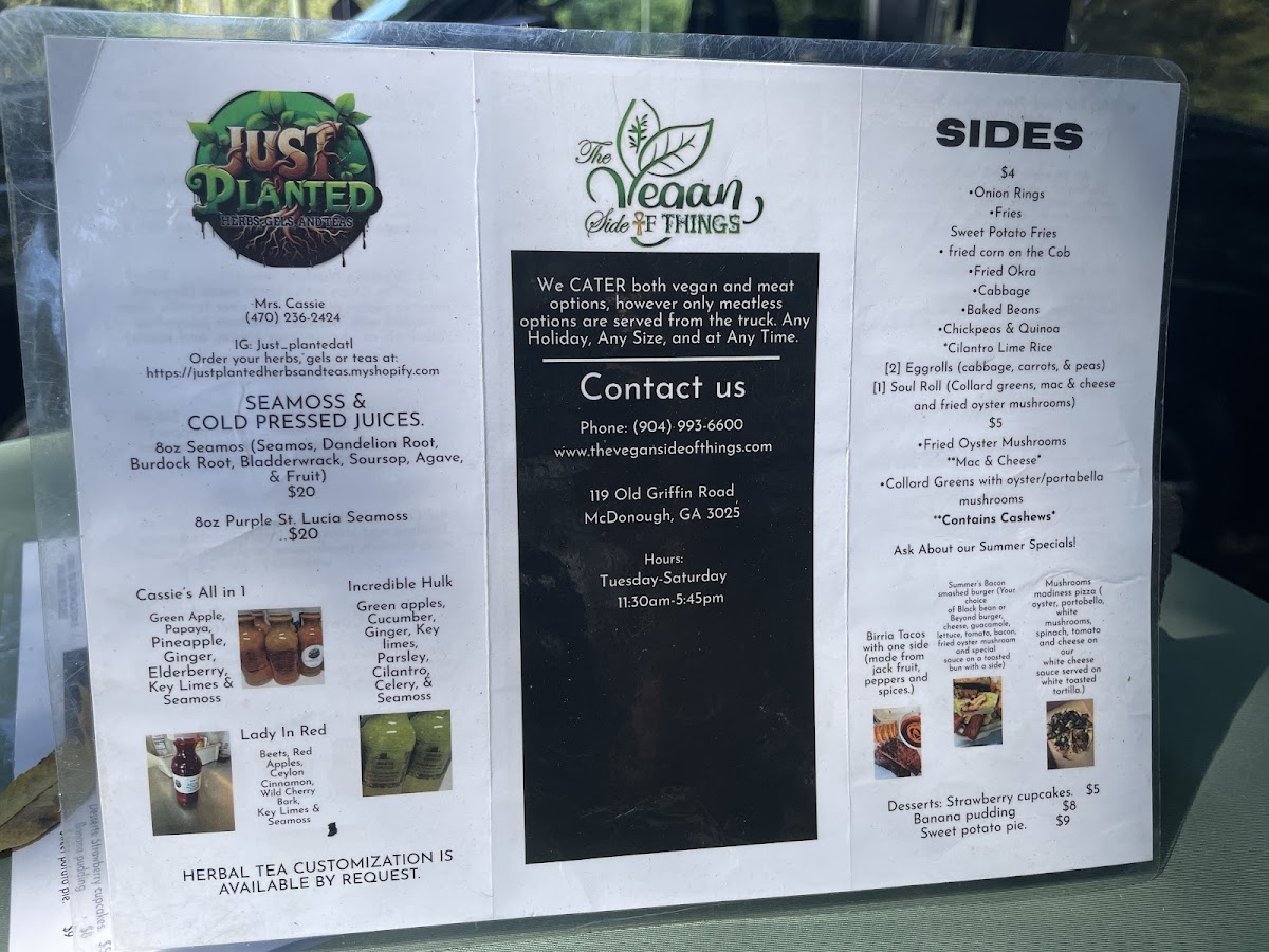 Tucked behind the Rib Shack in the Food Truck area at 119 Old Griffin Rd, McDonough, GA, you'll find The Vegan Side Of Things Menu, a must-try for anyone looking to enjoy delicious plant-based dishes in a casual, welcoming spot. Whether you're vegan, vegetarian, or just curious about adding more plant-based options to your diet, this menu has something for everyone. From mouthwatering tacos to hearty bowls packed with fresh ingredients, each dish is crafted with care and a touch of flavor that makes you forget you're eating meatless. It's the perfect place to stop by for a satisfying meal on the go or to sit and enjoy the vibrant atmosphere. With options that cater to different tastes and preferences, you’ll be coming back for more!